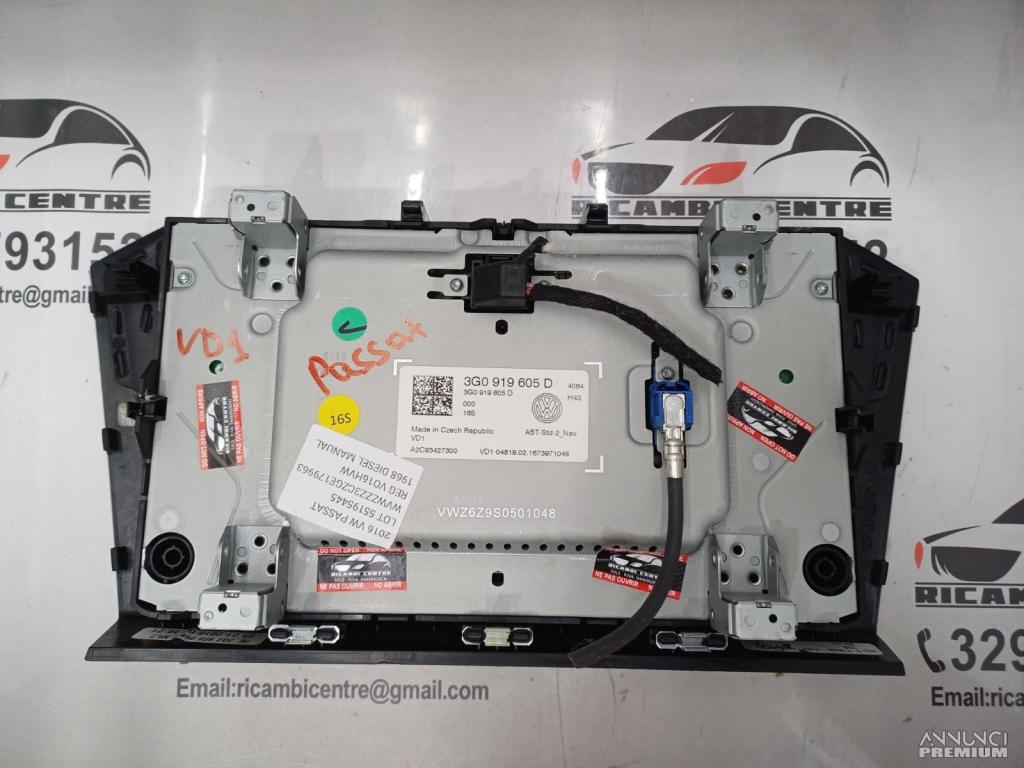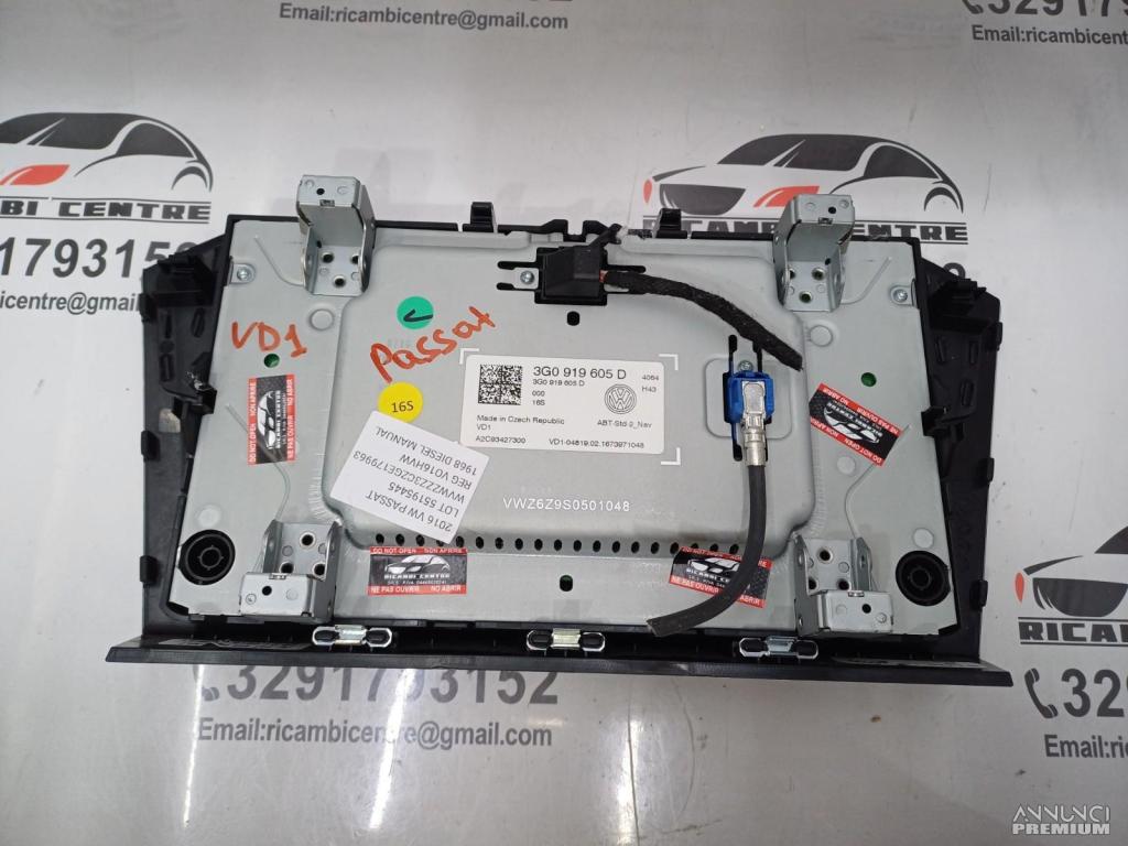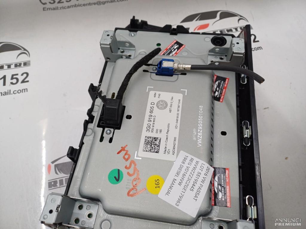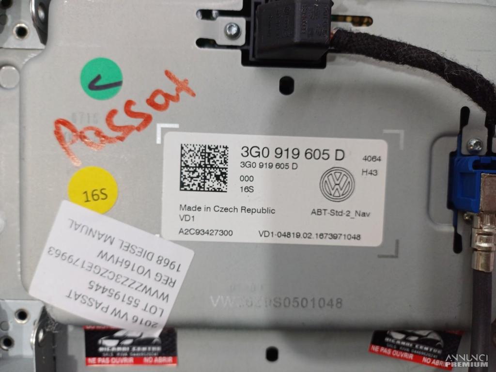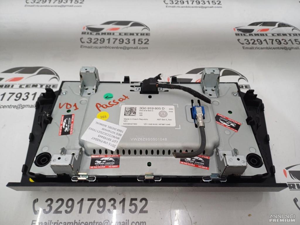DISPLAY SCHERMO MULTIFUNZIONE GPS NAVIGATORE VW PASSAT 2016 3G0919605D VD1