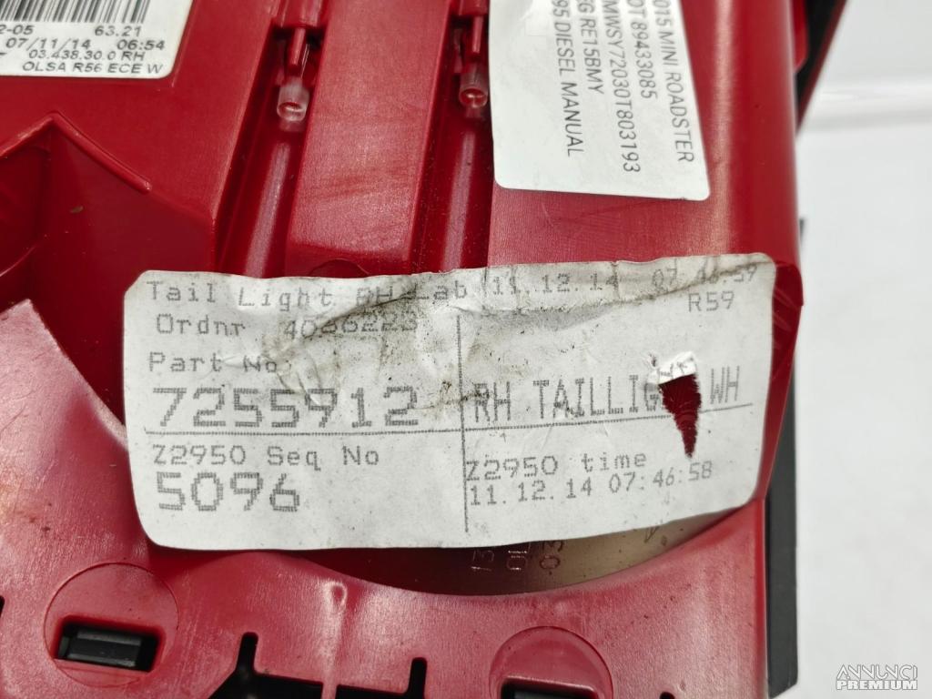 FARO FANALE STOP POSTERIORE DX MINI ROADSTER R59 R56 R57 2012-2015 7255912 RA3