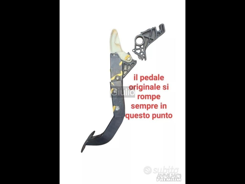 Queste auto purtroppo a causa del pedale in plastica subiscono la rottura di quest'ultimo, esso si rompe quando la frizione diventa dura e non riesce pi a sostenere il carico,la nostra soluzione risolve per sempre il problema