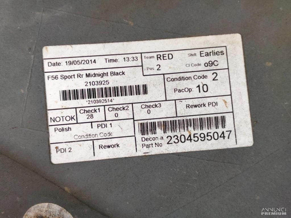 PARAURTI POSTERIORE ORIGINALE MINI COOPER S F56 J01 13-21 3PORTE HATCHBACK K12