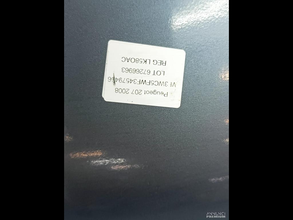 PARAURTI POSTERIORE PEUGEOT 207 2008 3 PORTE 9654549377 COLORE KTH K12