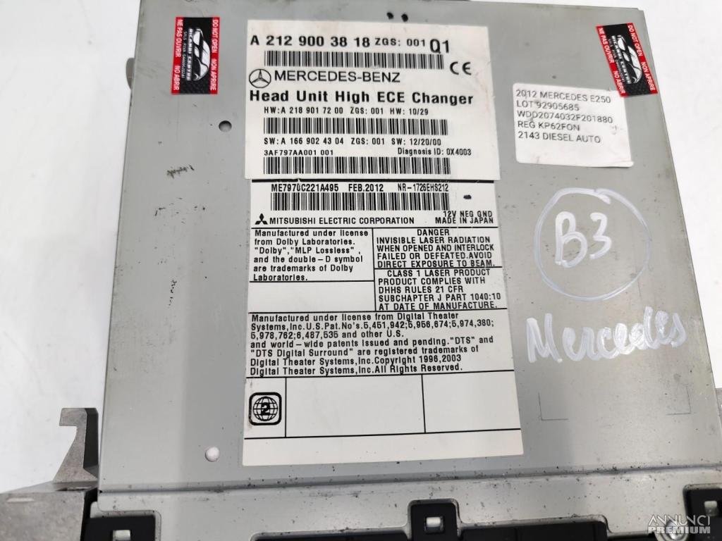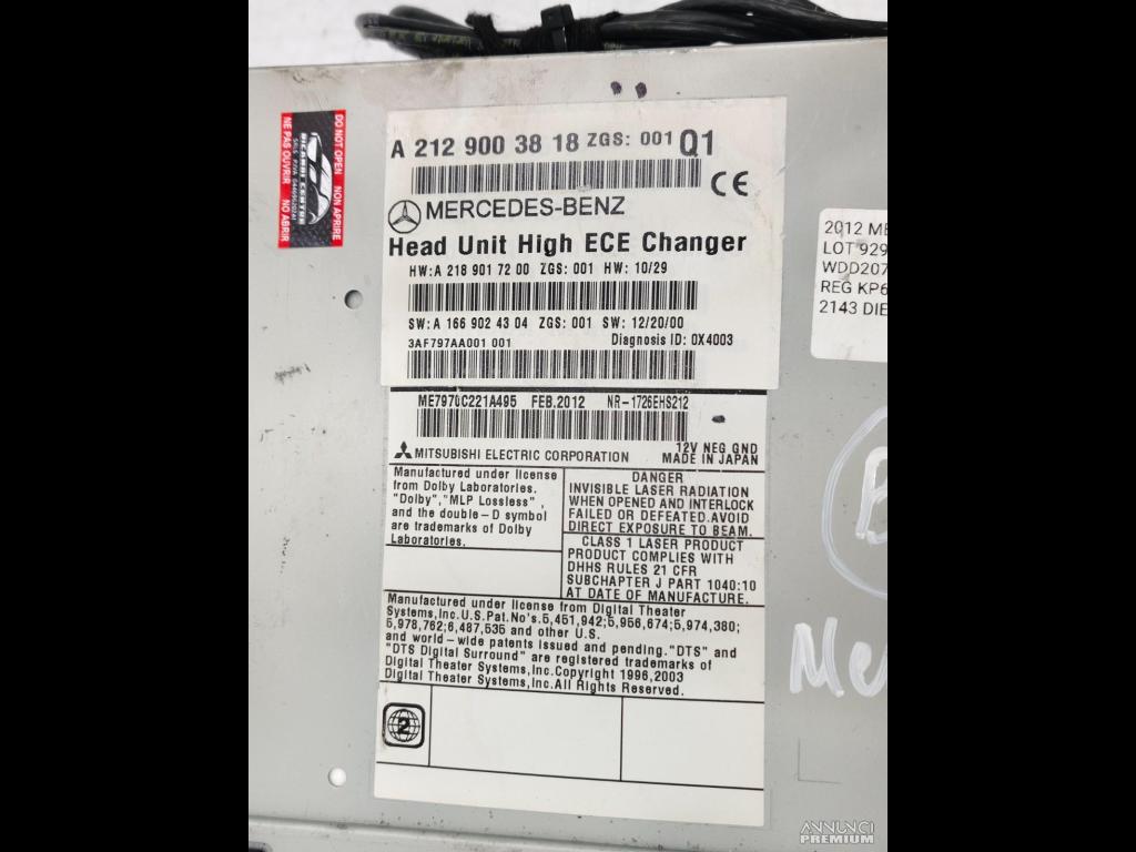 UNITA DI TESTA NAVIGAZIONE AUTORADIO MERCEDES E250 A207 2012 A2129003818 B3