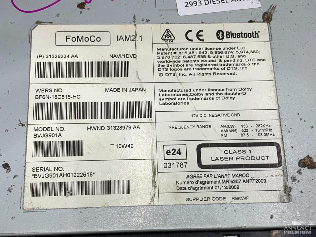 Codice ricambio originale OE/OEM : 31326224, 31326224AA, BF6N-18C815-HC, BF6N18C815HC, 31328979, 31328979aa