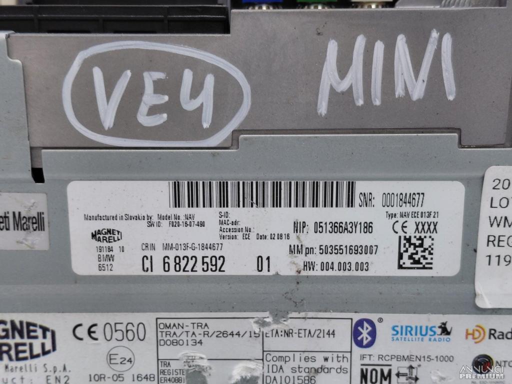 UNITA DI TESTA NAVIGAZIONE MULTIMEDIA BLUETOOTH MINI F54 F55 F56 F57 2016 VE4