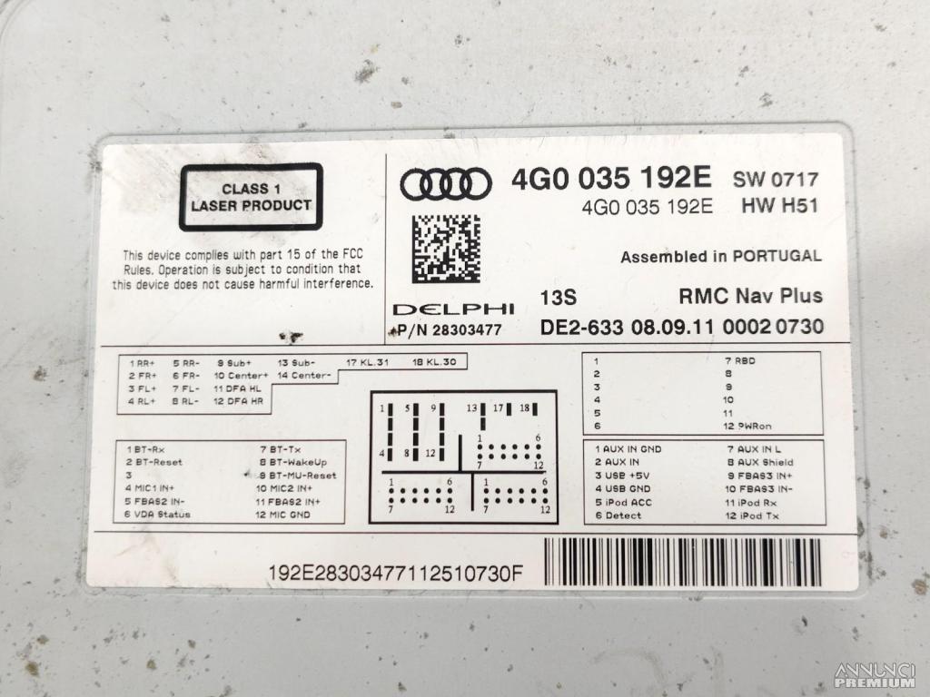 UNITA DI TESTA NAVIGAZIONE MULTIMEDIA LETTORE CD AUDI A7 8F7 2011 SD4