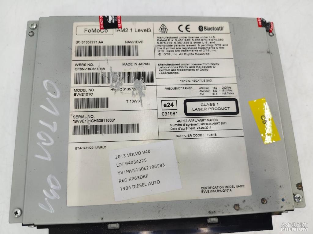 UNITA DI TESTA NAVIGAZIONE MULTIMEDIA LETTORE CD VOLVO V40 2013 31357771 C5