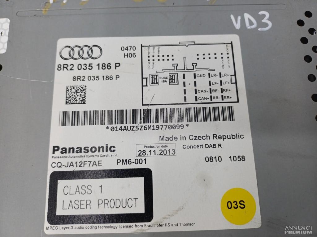 UNITA DI TESTA NAVIGAZIONE MULTIMEDIA (LETTORE CD) AUDI A5 Cabrio 2014 VD3