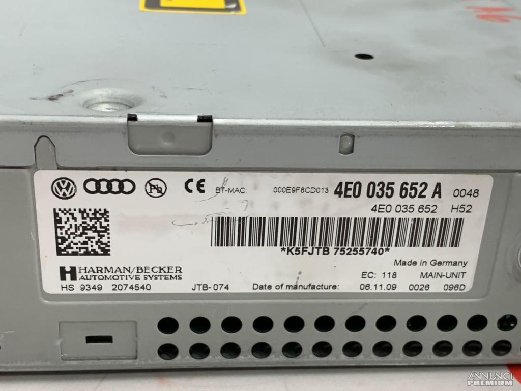 UNITA DI TESTA NAVIGAZIONE MULTIMEDIA (LETTORE CD) AUDI A6 2009 4E0035652A B4