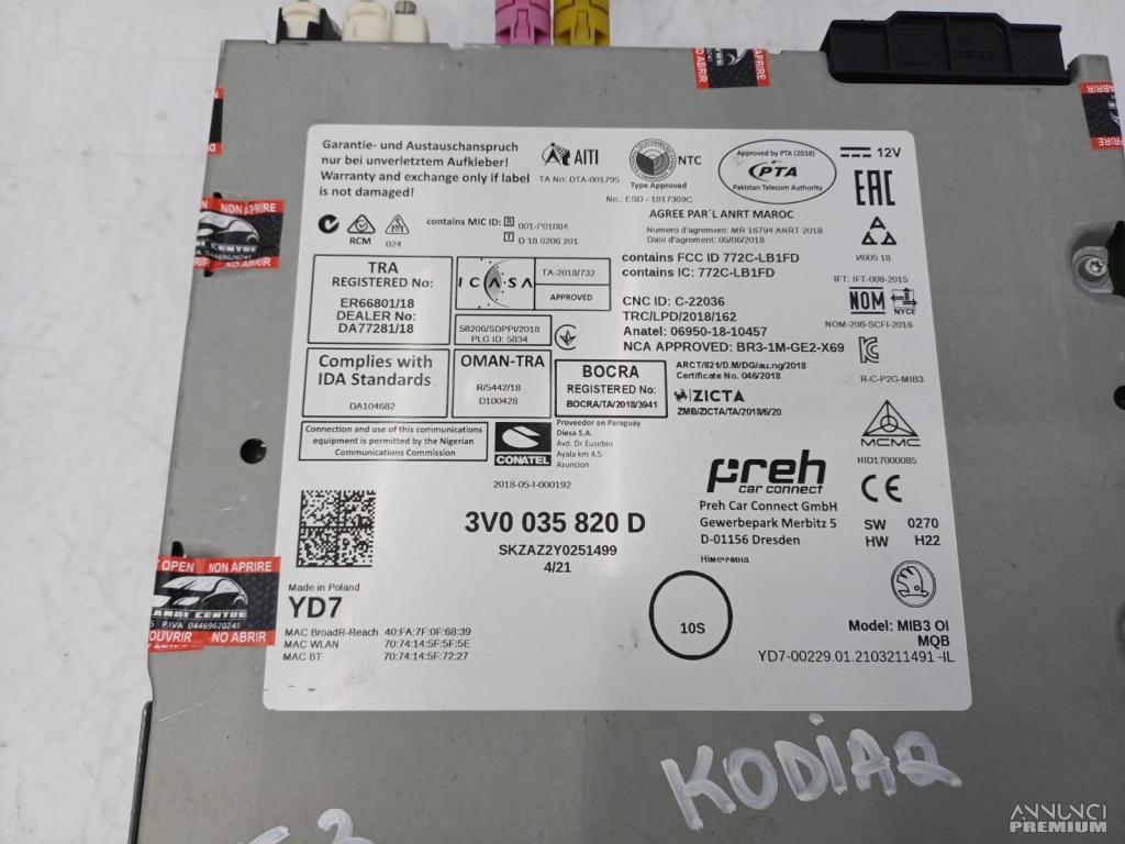 UNITA DI TESTA NAVIGAZIONE MULTIMEDIA SKODA KODIAQ I 2021 3V0035820D VE3