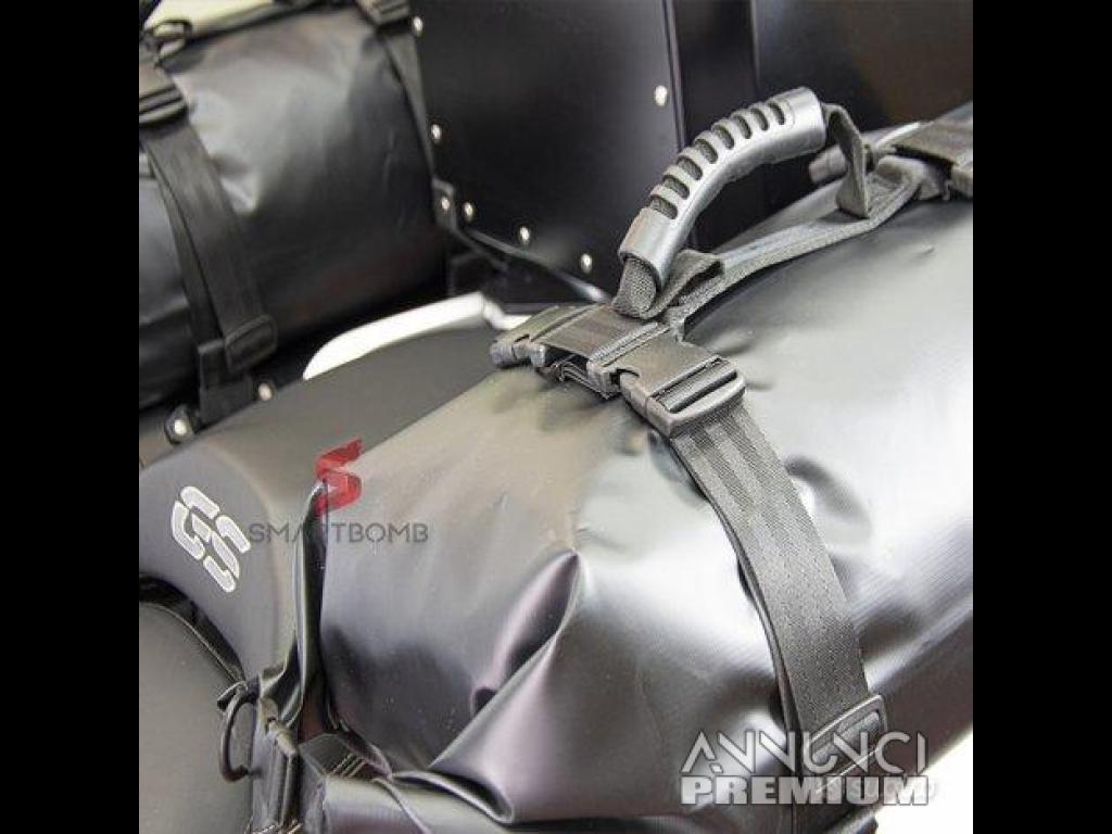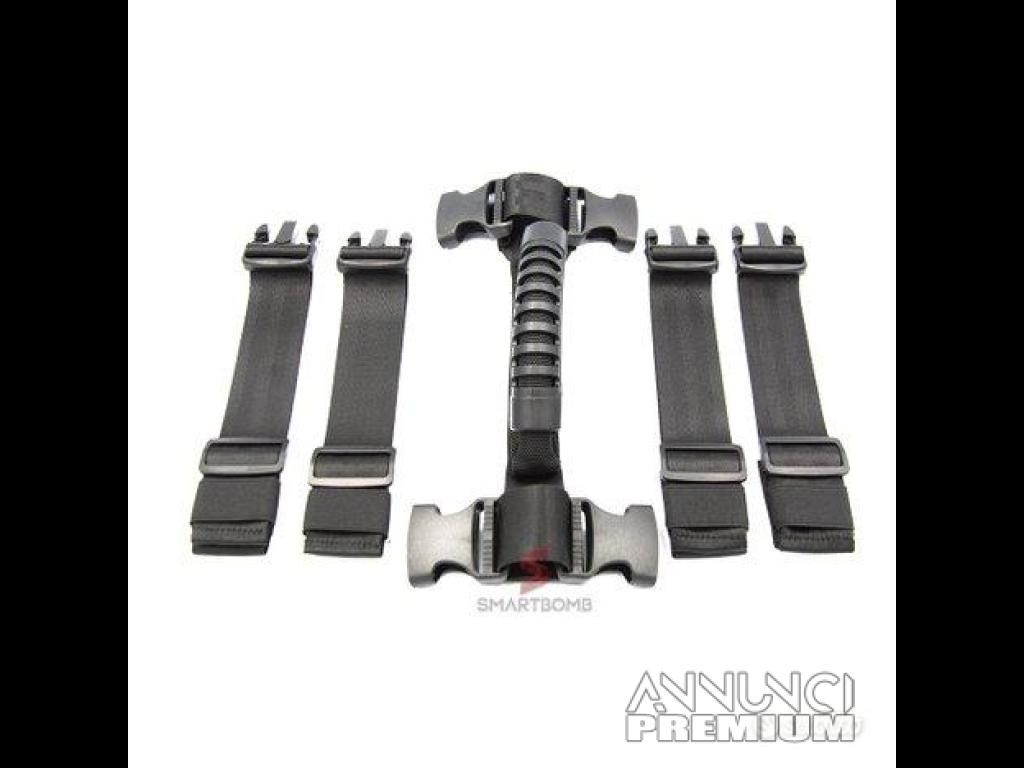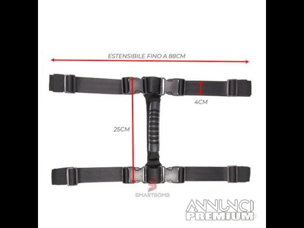 Inoltre le stesse maniglie porta borse possono essere utilizzati per trasportare il top box o valigie laterali da un punto all'altro grazie alla maniglia centrale hightgrip , grazie al tipo di materiale usato ed al sistema fastclip potrete sganciare con estrema facilità le seguenti cinghie che si presentano un'ottima alternativa alle cinghie a cricchetto anche grazie alla specificata semplicità di installazione ed alla compatibilità universale per la maggiorparte dei bauletti presenti in commercio.