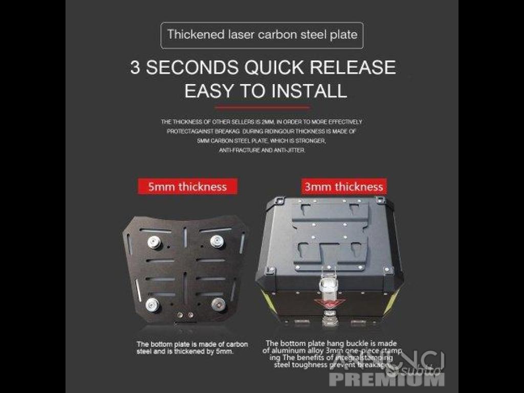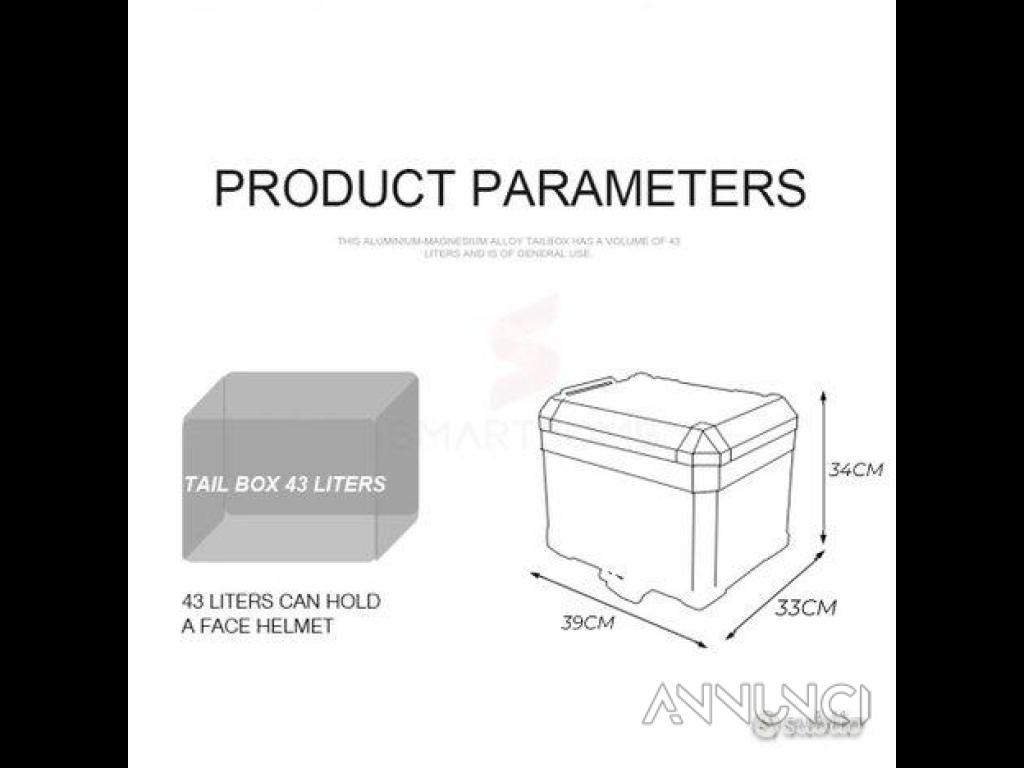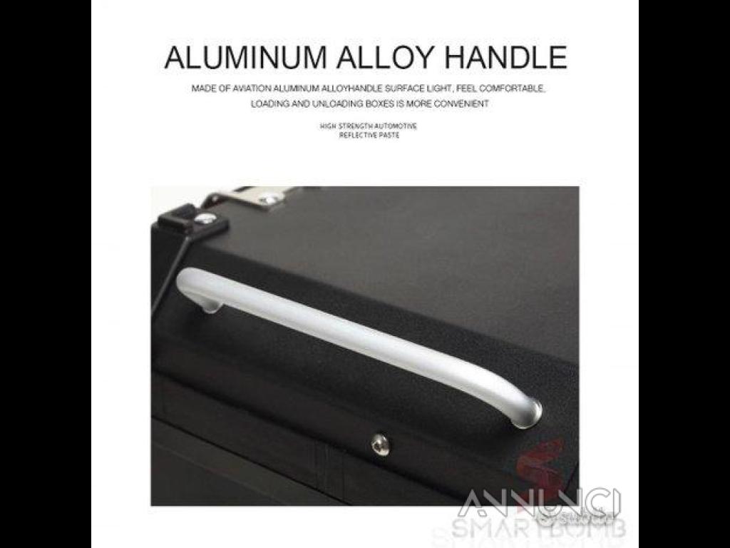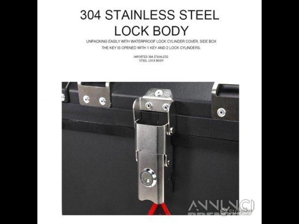 Prodotto di alta qualità , con rifinimenti di realizzazione tedesca , capacità 43 litri , serratura in acciaio inox consentirà di avere massima sicurezza con carcassa realizzata in alluminio con spessore di 3,0mm creando un connubbio di sicurezza e leggerezza attenuando vibrazioni che può avvertire il passeggero durante la marcia