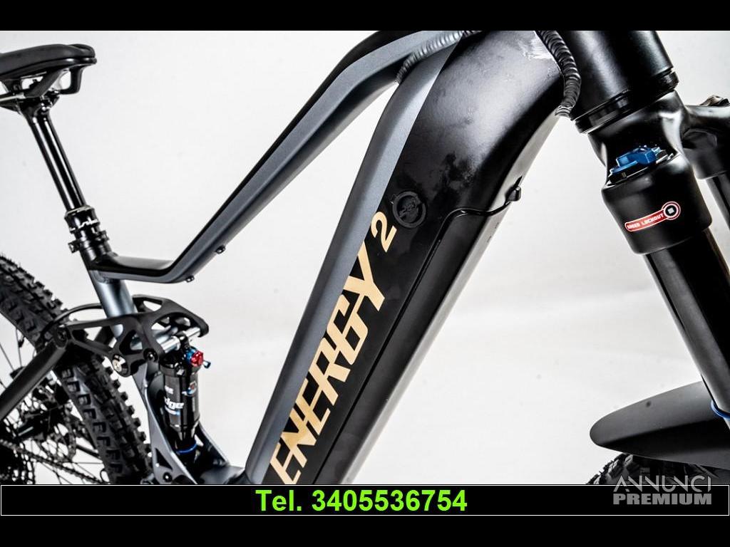 ENERGY FENICE HA UN TELAIO IN ALLUMINIO CON UN TRIANGOLO POSTERIORE PROGRESSIVO E RUOTE DIFFERENZIATE (ANTERIORE 29 - POSTERIORE 27,5) PER GARANTIRE ELEVATO CONTROLLO E PIACERE DI GUIDA.