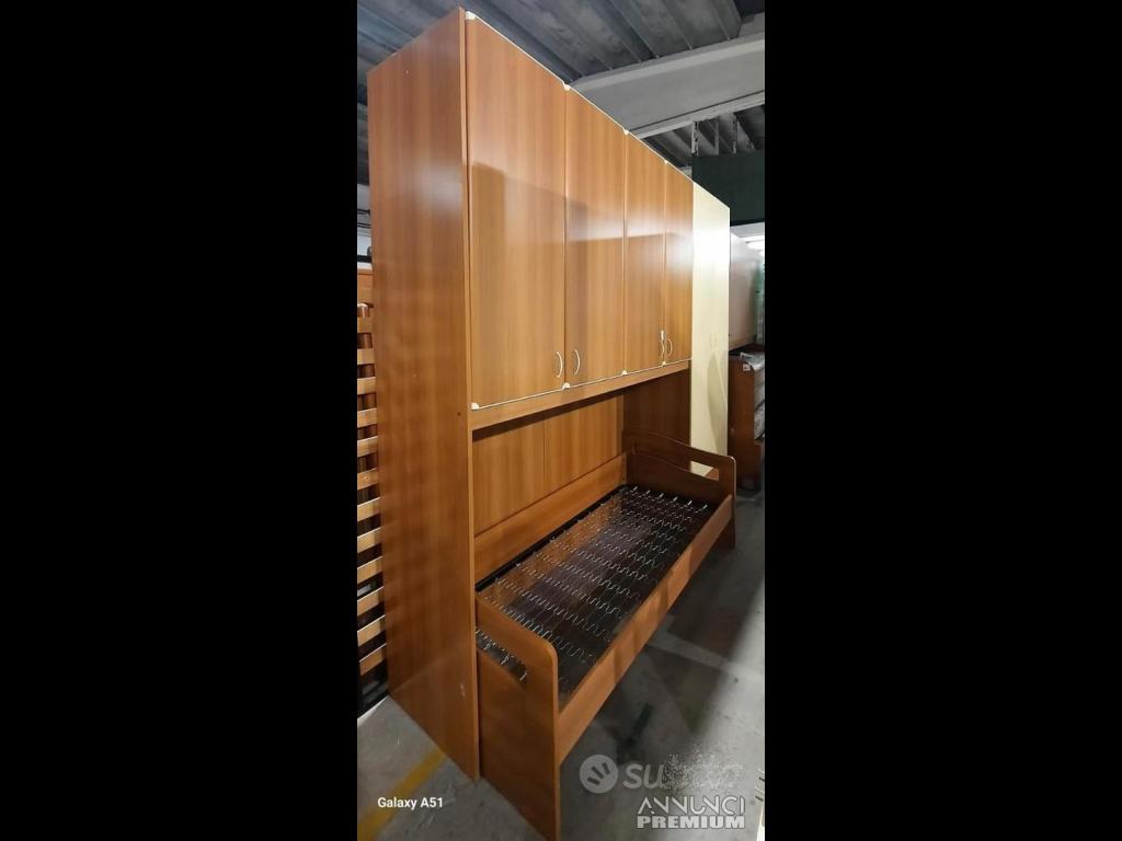 CAMERETTA A PONTE COLORE NOCE E GIALLINO COMPLETO DI LETTO SINGOLO CON RETE (L CM 293 X P CM 60 X H 260)