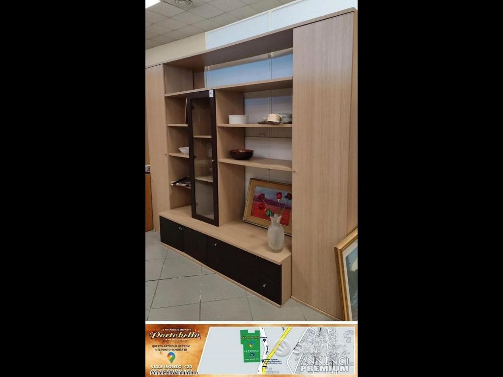 PARETE ATTREZZATA STILE MODERNO STRUTTURA ROVERE + VETRINA+ ANTINE+ CASSETTI COLORE WENGE'(L272X60PX223H)